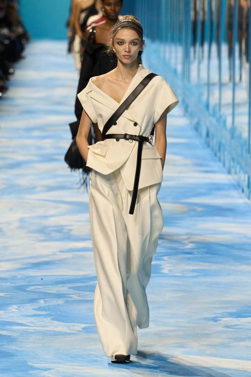 Il primo look, così suggestivo, lascia poco spazio ad un’ulteriore immaginazione: il completo della donna, sportivo ma femminile ed elegante, potrebbe essere premiato agli Hunger Games data la familiarità con la paladina dei diritti dell’omonimo film. La sfilata Dior, quindi, non è solo una sfilata; le donne sono al centro della collezione e se ne esalta la forza, lo spirito, l’intraprendenza e la resilienza. Vestiti neri, corti e lunghi, a seconda dell’outfit esibito, emergono sullo schermo grazie alla loro vitalità e bellezza. Il bianco e l’argento completano, infine, la scena, immergendola in una nuvola di fantasia che evoca un mondo lontano.