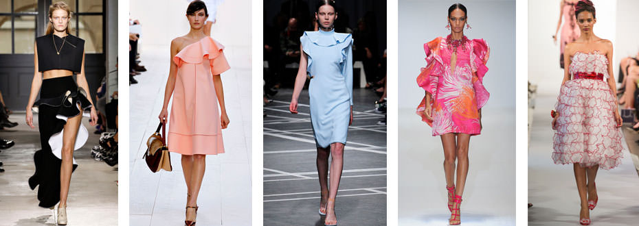 Givenchy propone abiti e bluse con giochi di volants sullo scollo o sulle maniche trattenuti da clips dorate, Chloé punta su abiti svasati, top in organza a strati con ruches ampie e rigide sullo scollo. Gucci, abbandonati i colori pastello, si pone a favore di stampe e di toni più decisi come il fucsia, il blu elettrico, l’arancio e il verde smeraldo, mentre Oscar de la Renta crea una collezione di abiti taglio Anni ’50, rigorosamente con tripudio di ruches. Il calore della Spagna ispira infine la collezione primaverile di Balenciaga e Ralph Lauren Collection, con gonne flamenco a volant con orlo asimmetrico e capi accessoriati da baschi, sarape e balze tipiche degli abiti della tradizione spagnola.
