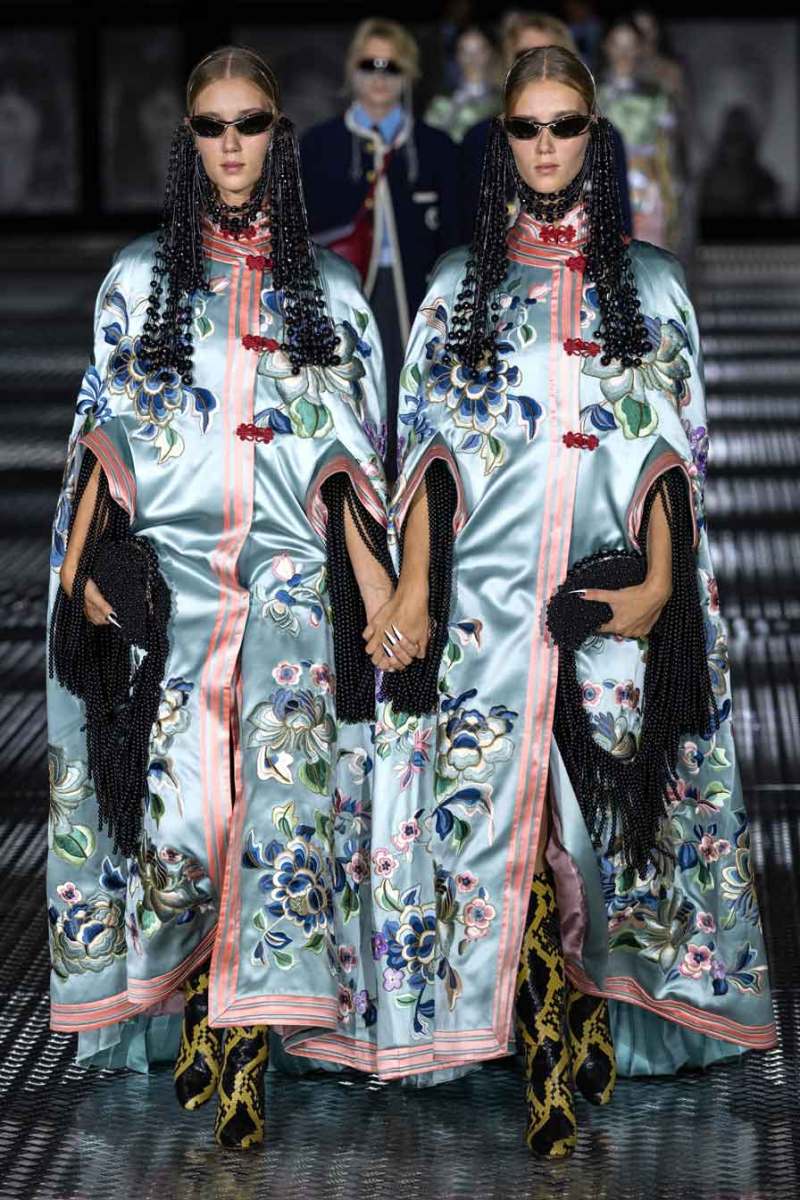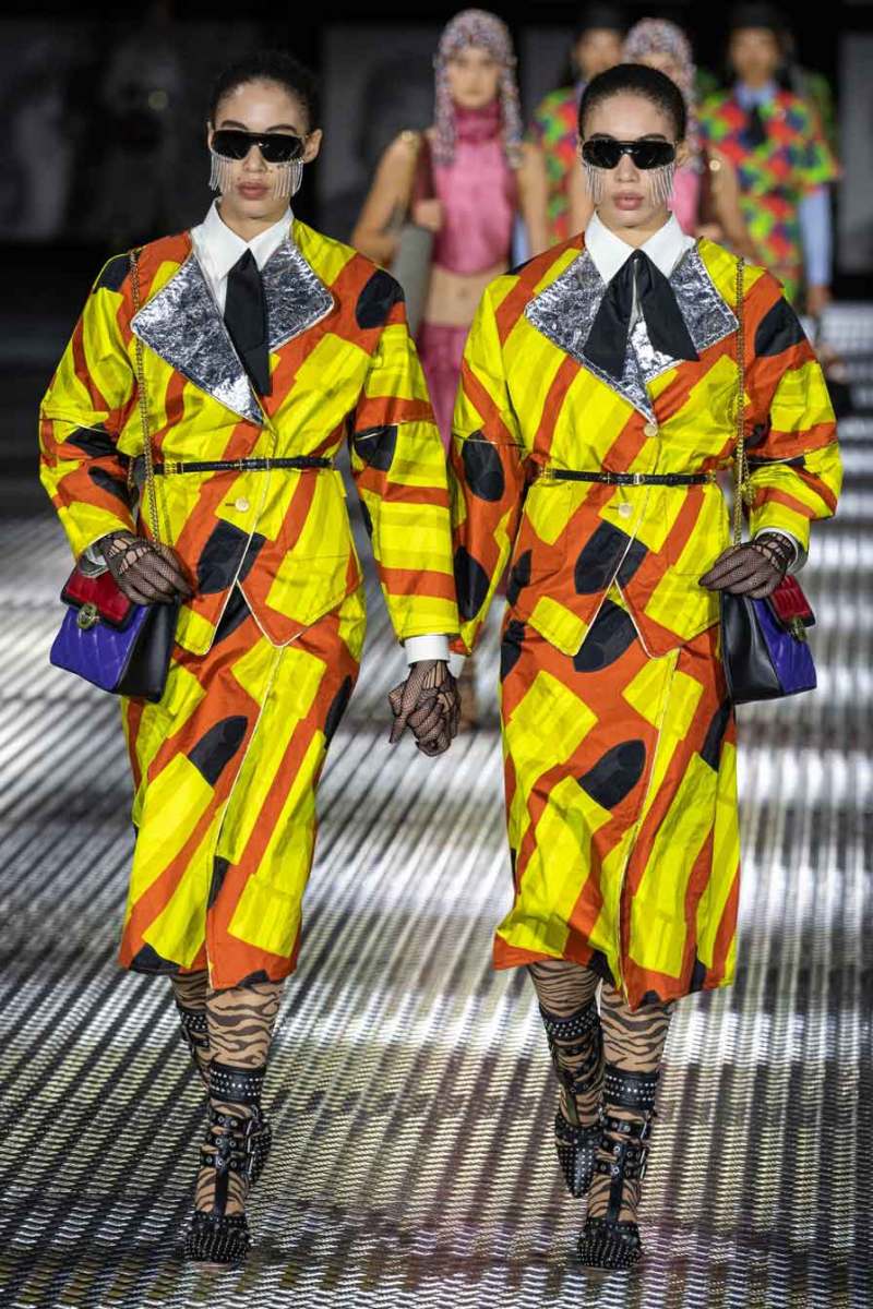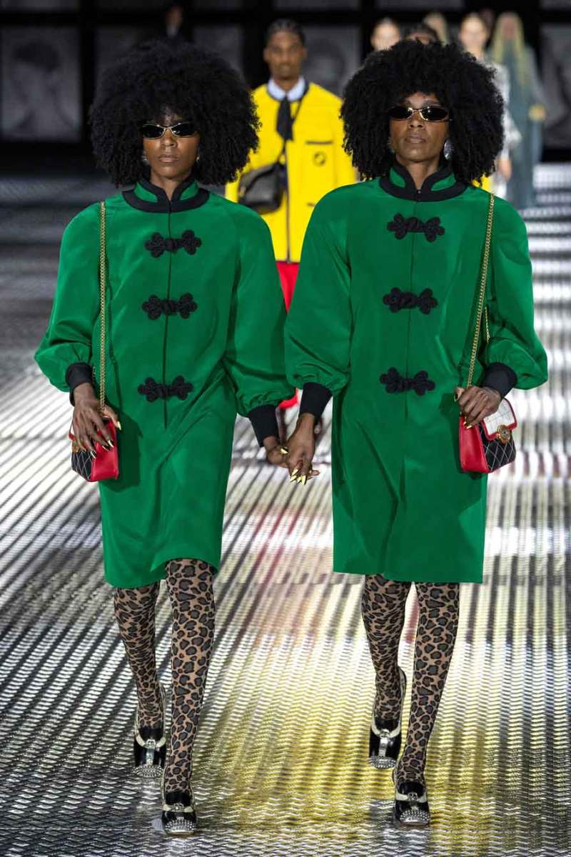 Ma l’accessorio più irriverente della collezione è la nuova mascotte dei look firmati Gucci: Gizmo, il cartone animato anni ’80 che ha conquistato diverse generazioni. Il suo muso diventa un marsupio, una pochette, un accessorio must-have e anche una stampa.