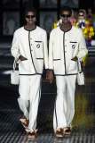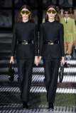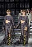 Allo sfilare degli ultimi tre look, la musica si fa incalzante e la parete si alza al centro della stanza mostrando l’altra metà dello spazio. Sul lato opposto, al di là della parete, sta andando in scena la stessa identica sfilata. Non è uno specchio, né un qualche strano effetto ottico architettato: si tratta di modelli omozigoti. Da qui un casting strabiliante di 68 coppie di modelli perfettamente identici – nell’aspetto e nel look – iniziano a sfilare tenendosi per mano. E inizia la magia.