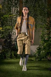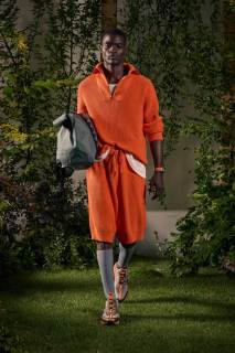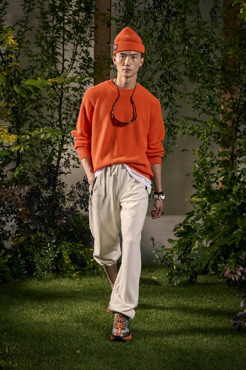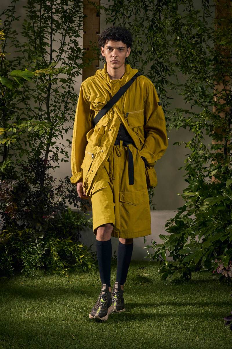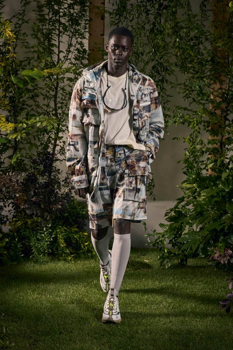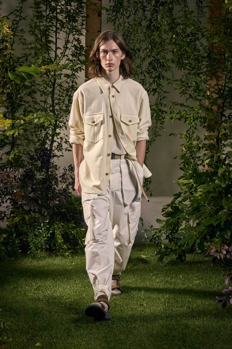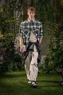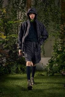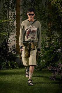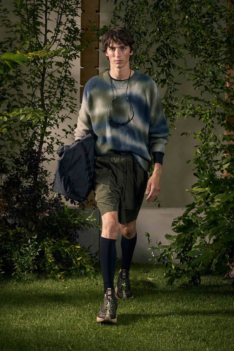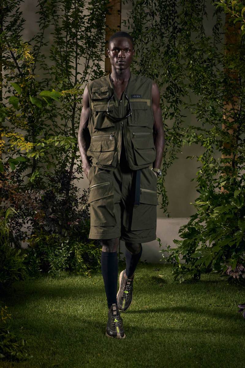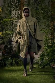 Woolrich propone una collezione di abbigliamento outdoor che rivede il suo heritage in chiave contemporanea. Con 60 capi presentati, la collezione include giacche da pesca, capi da trail running, pantaloncini da trekking e numerosi riferimenti sportivi. I tessuti tecnici e innovativi garantiscono praticità e versatilità. I colori spaziano dal verde militare a tonalità terrose, con accenti più vividi e accesi. Woolrich riesce a combinare estetica e funzionalità, reinventando capi tradizionali, come i pantaloni cargo in nylon che diventano shorts.