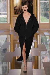 Alla base di una collezione fortemente contemporanea restano gli stilemi di eleganza eterea da sempre legati a Maison Valentino. La proverbiale portabilità del nero si sposa con abiti in cui giorno e sera si intrecciano in modo indissolubile, complici la raffinatezza dei tessuti e l’essenzialità dei design.