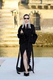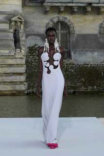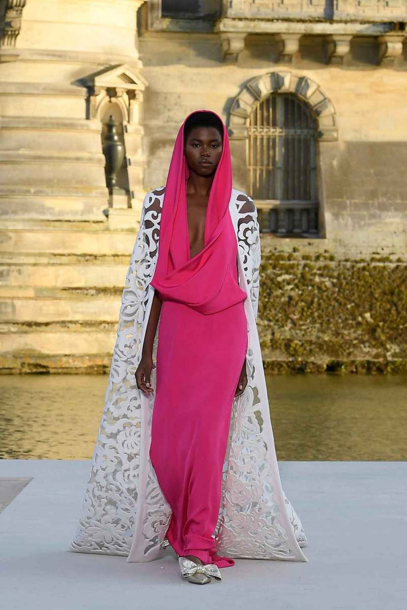 Le stampe sono maxi, così come i ricami, e gli orecchini chandelier indossati dalle modelle svolazzavano come i loro capelli naturali al vento al calar del sole. A contribuire alla magia, la riconfermata straordinaria voce di Anohni in sottofondo, ad accompagnare questa nuova alta moda per così dire anche bassa, con i piedi per terra, per la scelta di scarpe flat, come già visto in altre collezioni, a favore della comodità di questa Haute Couture Week.