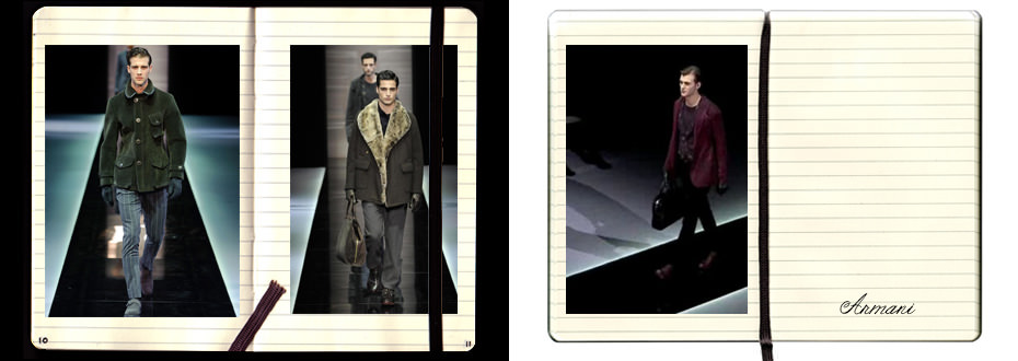 Per l’autunno/inverno 2013/14 Armani ha proposto capi maschili eleganti e sportivi per un guardaroba che allarga le spalle, ma senza forzature, che esalta il corpo, ma senza esagerazioni: “Credo stia finendo tutta questa mania del fisico strutturato e palestrato, un bel ragazzo può essere magro e sportivo senza pettorali e addominali in evidenza”, sostiene Armani.