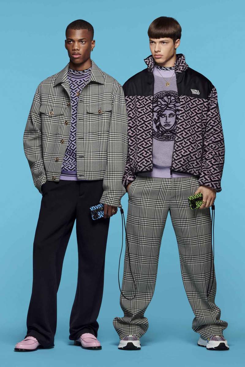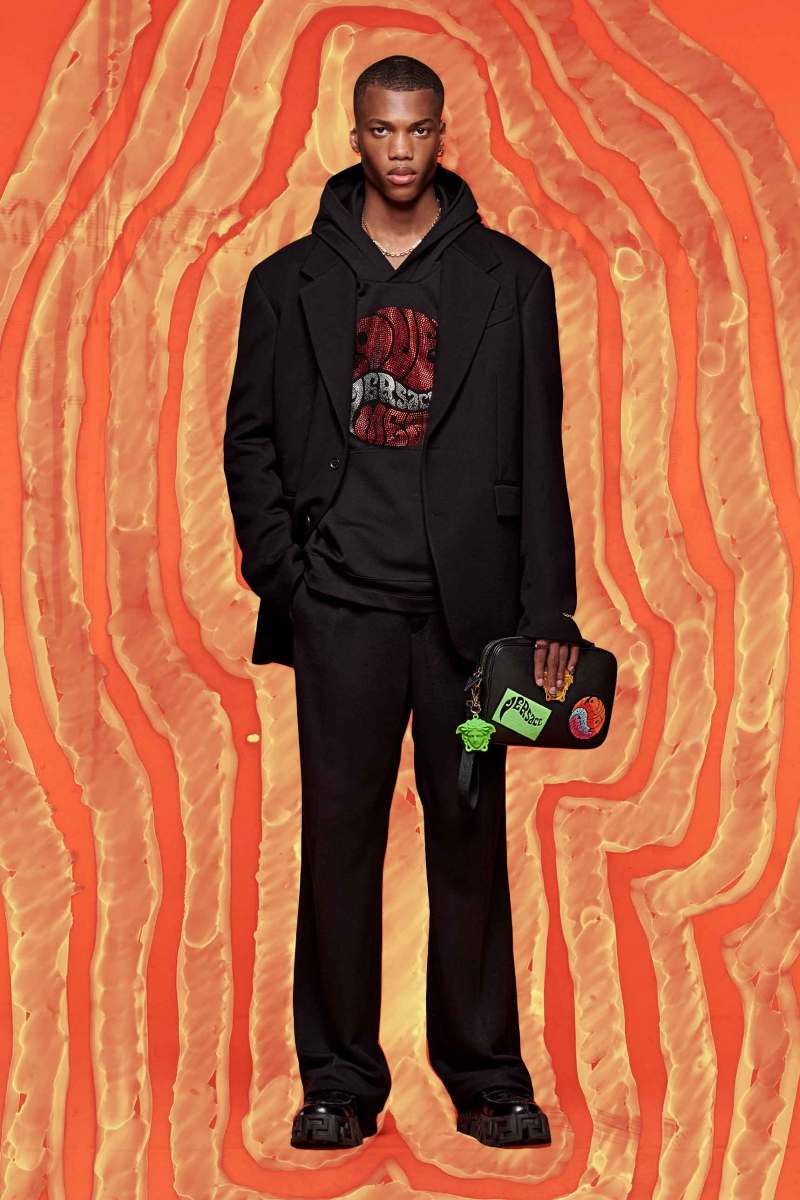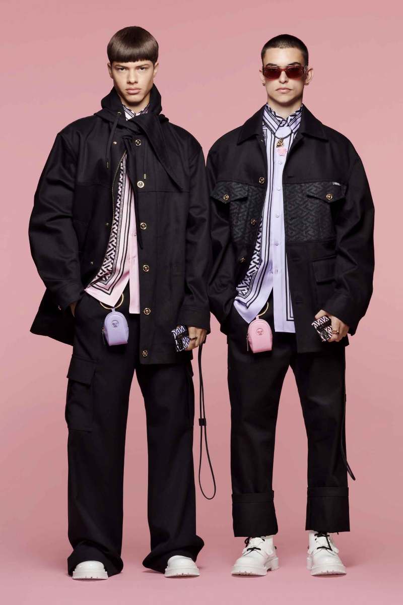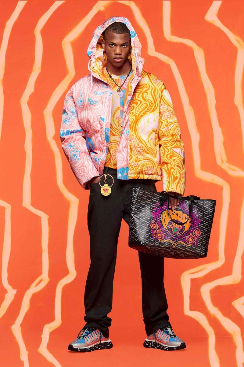Nonostante sia estremamente colorata, la collezione mantiene una tavolozza dai toni pastello che mette in risalto gli elementi grafici. La nuova stampa Medusa Music è declinata nei toni acidi e pastello, creando un effetto psichedelico su camicie e shorts dai volumi over, in contrasto con il nero che rende contemporanea la potente nostalgia.