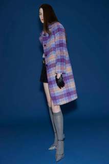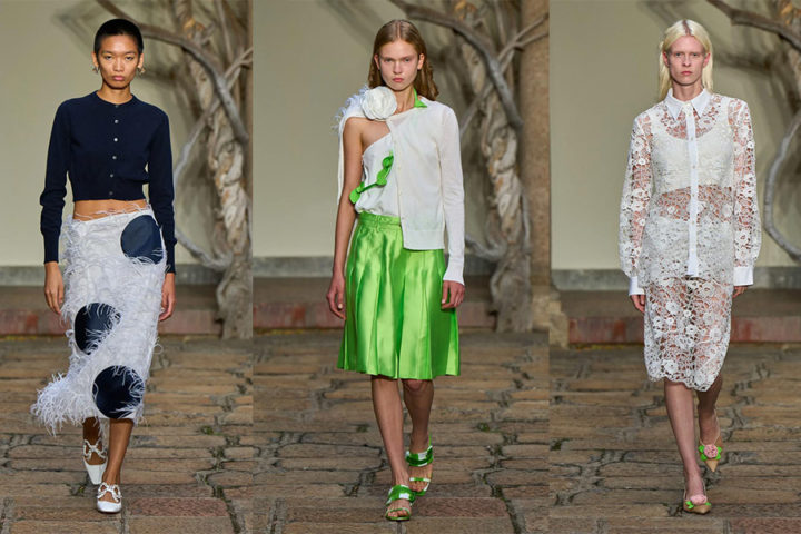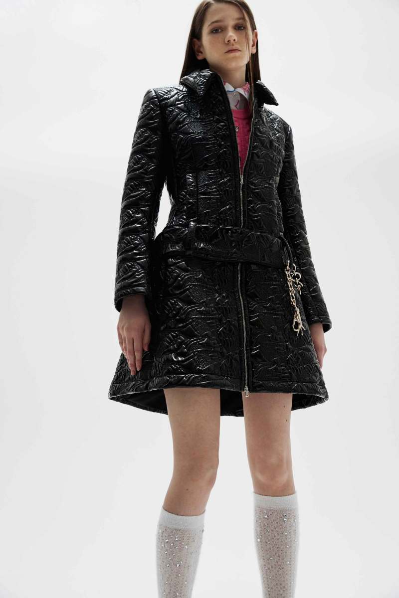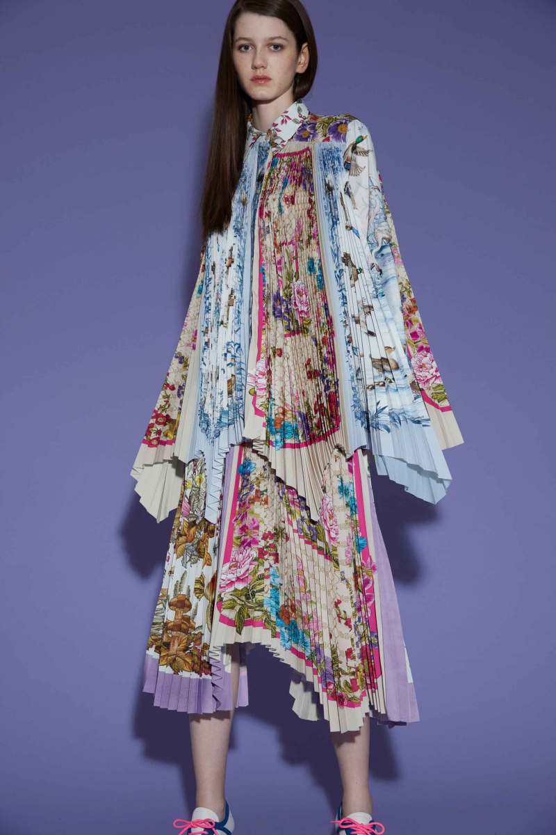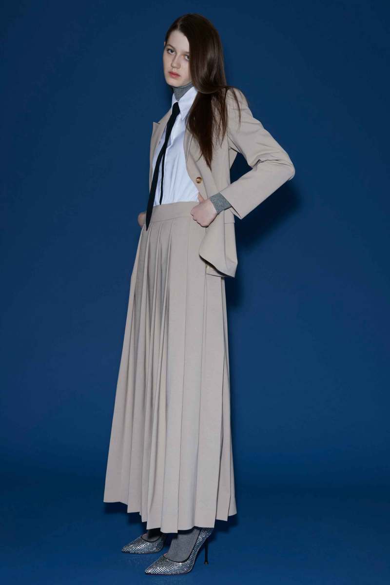 La magia della natura affascina e ispira le creazioni di Vivetta. Animali, foglie, fiori autunnali e muschio sono gli elementi che dalla natura si trasferiscono sui nuovi abiti firmati Vivetta. I foulard diventano abiti dai colori brillanti e raffinati. Un blazer maschile, una camicia, una maxi gonna a pieghe e un cappotto doppiopetto colpiscono l’attenzione della audience e vengono affiancati da maglioncini in mohair a trama compatta, da corti piumini in vinile nero e da minigonne.