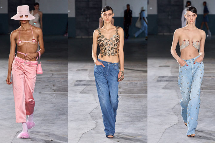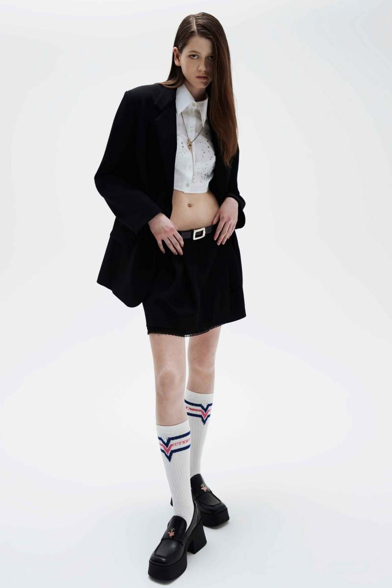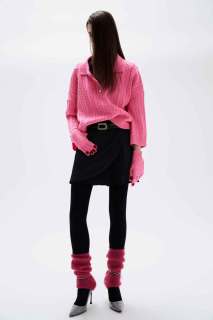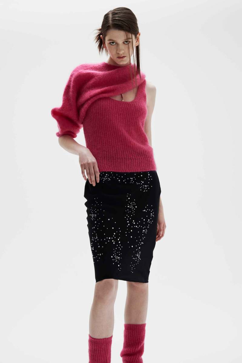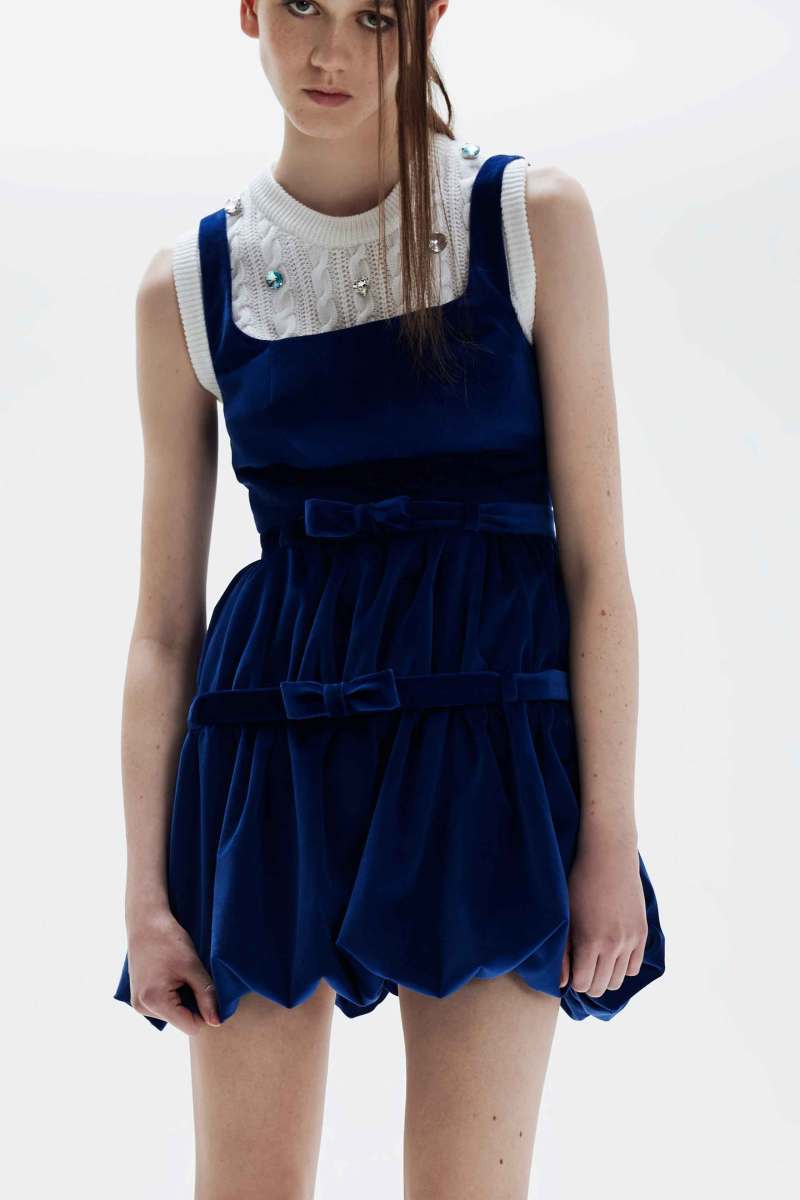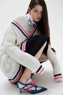 La magia della natura affascina e ispira le creazioni di Vivetta. Animali, foglie, fiori autunnali e muschio sono gli elementi che dalla natura si trasferiscono sui nuovi abiti firmati Vivetta. I foulard diventano abiti dai colori brillanti e raffinati. Un blazer maschile, una camicia, una maxi gonna a pieghe e un cappotto doppiopetto colpiscono l’attenzione della audience e vengono affiancati da maglioncini in mohair a trama compatta, da corti piumini in vinile nero e da minigonne.