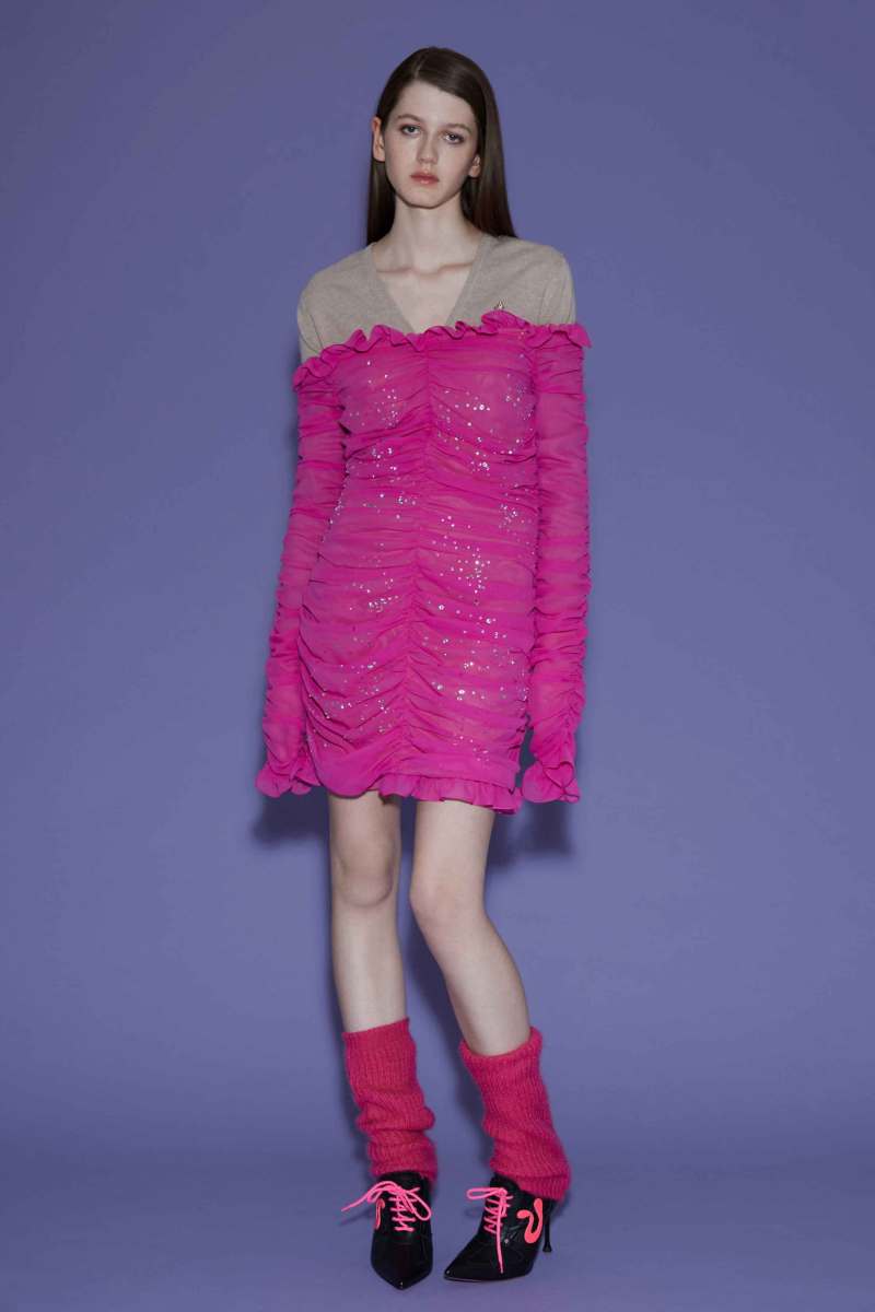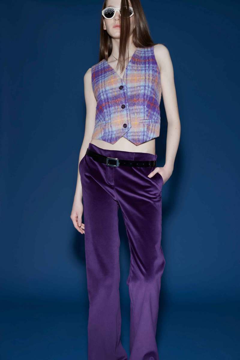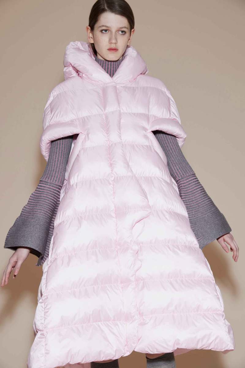 Vivetta, nelle sue nuove creazioni, utilizza numerosi contrasti: gioca e mixa diverse lunghezze e volumi; proporzioni ampie e generose vengono accostate a forme più ridotte e strette, le lunghezze dei cappotti e dei maxi dress si contrappongono alle minigonne. Il tono della collezione viene reso elegante dai tessuti preziosi utilizzati, tra cui chiffon, raso e cashmere, e dai raffinati colori scelti, tra cui ametista, rosa bubblegum e citrino, colori intensi, vivaci e piuttosto saturi.