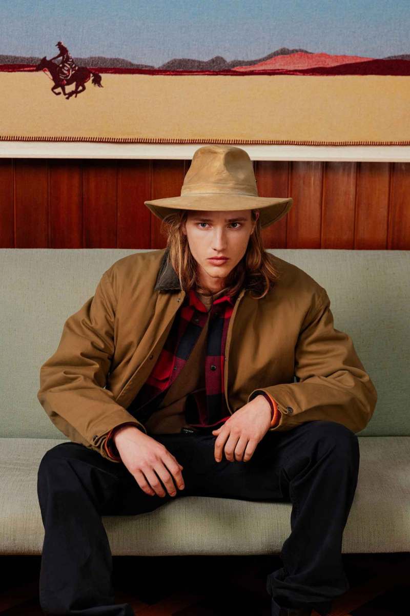 Il primo tema della collezione è quello di The Western Outdoors, che celebra lo sportswear americano e le camicie di flanella. I due capi principali sono il Western Down Vest, un articolo prettamente vintage, e il Quilted Patchwork Parka, fatto di motivi diversi che si mixano tra loro.