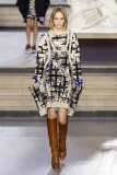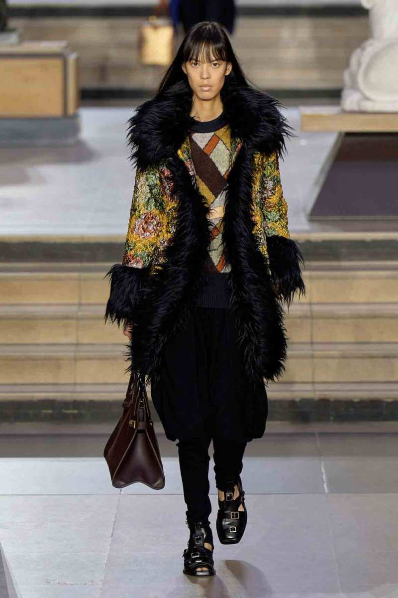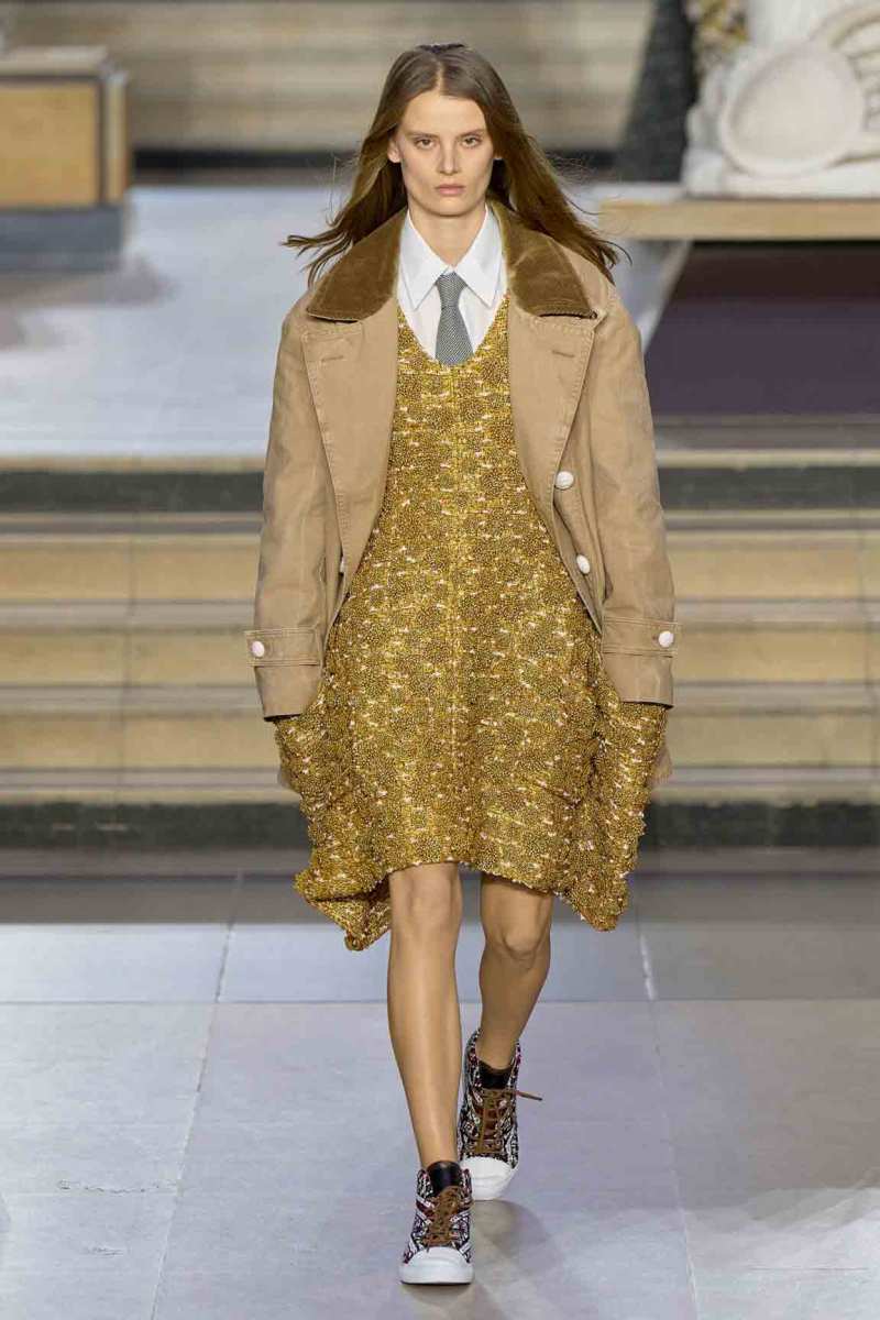 Dal tweed in oro scintillante ai maglioni con immagini punk applicate sopra e riproduzioni floreali che ritroviamo anche nei bauletti bronzo e argento con sfondo l’iconico monogram. Borse clutches dal taglio squadrato e maxi bag totes della collezione Dauphine.
