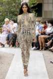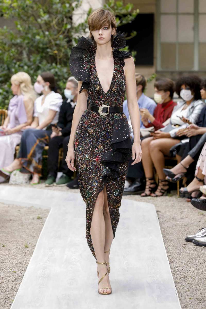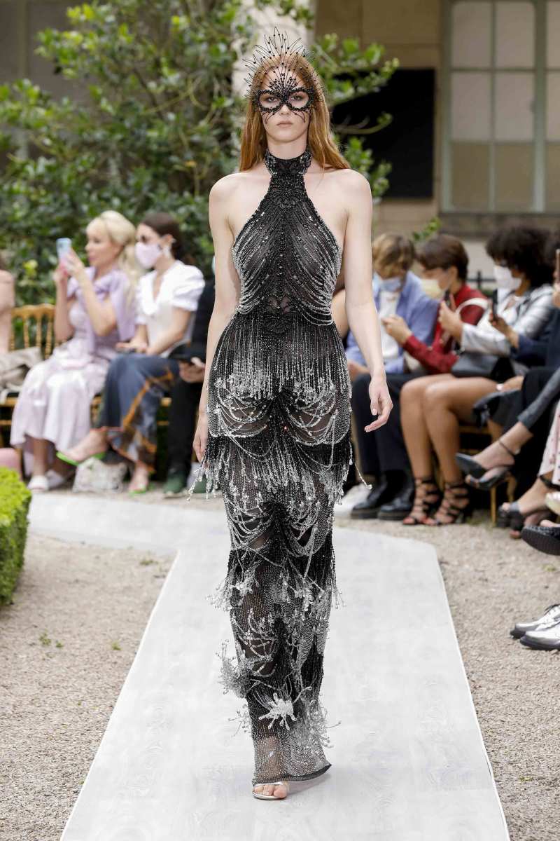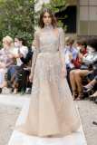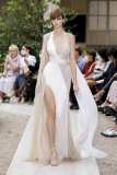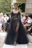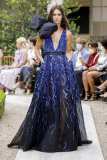 La collezione, presentata a Parigi davanti a un pubblico ristretto, è apparsa come un flusso infinito di abiti sontuosi attraverso i quali Murad si è chiaramente divertito con un glamour audace e senza sensi di colpa, rivisitando con gioia i suoi migliori successi. Gli abiti da sera pronti per il red carpet e disseminati di ricami, brillavano con frange di cristalli in argento e oro. Mantelle di taffetà a palloncino perfettamente in linea con l’intera collezione. Immancabili decori realizzati con strass, a creare un attraente contrasto tra forme voluminose e silhouette sottili.