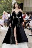 Una tavolozza di nero profondo è stata sdrammatizzata dai toni gioiello dello smeraldo, rubino e zaffiro, conferendo agli abiti un fascino vivace e accattivante. Il motivo di questo contrasto, ha sottolineato Zuhair Murad, è il fatto che le donne di oggi vogliono essere sotto la luce dei riflettori, bramano di protagonismo e sono concentrate su un lusso fastueux; per assecondarle, il designer ha preso ispirazione dalla luce accecante tipica dei lampadari di uno storico palazzo sul Canal Grande.