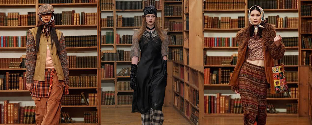 Per l’AW 2024 la designer ha immaginato la sua sfilata all’interno della Rare Book Room del celebre bookstore newyorkese. L’allestimento non era casuale: l’ispirazione viene da un mix evocativo tra femminilità introspettiva alla Virginia Woolf e l’arguzia detective di personaggi come quelli creati da Agatha Christie. Merletti, stampe romantiche, dettagli rétro, colli Edwardiani, ogni capo sembrava uscito da un romanzo vintage e la passerella era essa stessa un racconto.