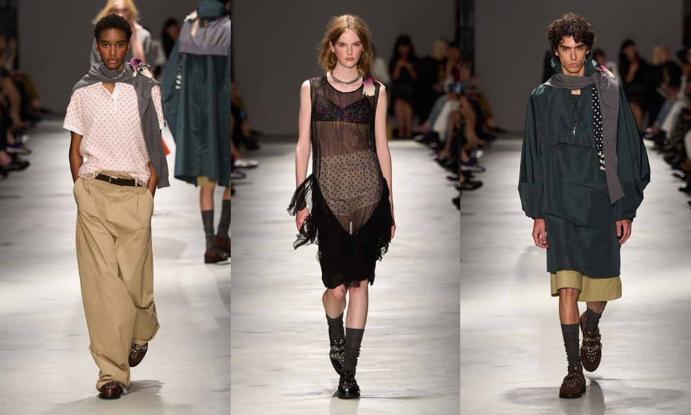 Dell’Acqua ha raccontato di aver scelto di rileggere le estetiche dei decenni passati senza indulgere alla nostalgia, trasformandole in un linguaggio nuovo e corale. Il designer ha pescato tra immagini preppy, suggestioni punk e soluzioni nate da epoche distinte, intrecciandole fino a creare un racconto attuale e radicalmente contemporaneo. «Ho annullato ogni sintomo di nostalgia, spiega, per fonderli in un linguaggio unico, capace di parlare al presente». Così, epoche e mode si stratificano come tessuti, fondendosi in una visione che abbraccia il passato solo per reinventarlo. La SS26 diventa quindi un manifesto di coraggio creativo: un invito a guardare oltre la superficie, a leggere il layering come metafora di libertà e a lasciarsi trasportare da un’estetica che è al tempo stesso personale, universale e poetica.