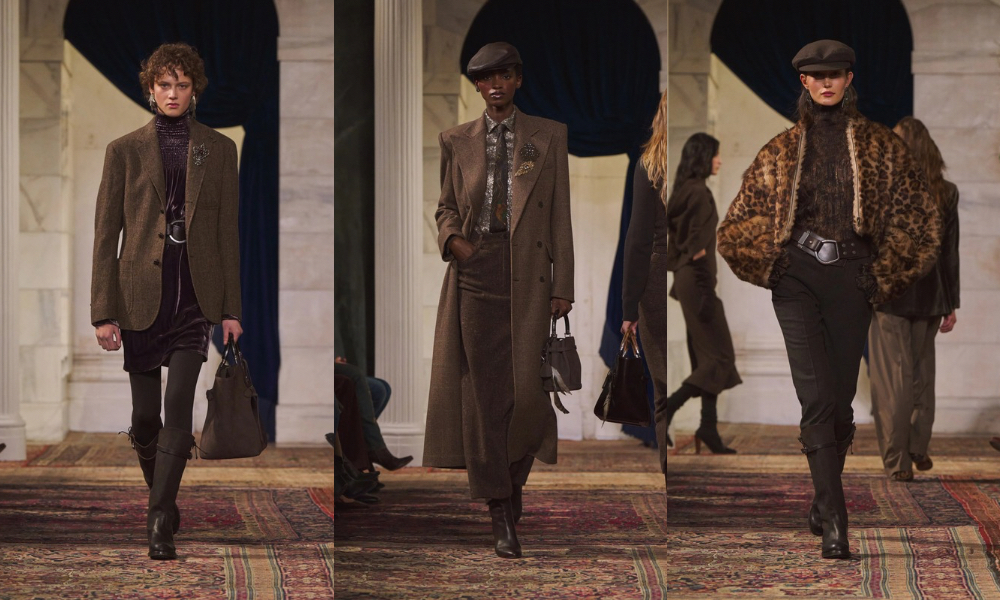 La collezione propone un linguaggio estetico che unisce eleganza alla Ralph Lauren e note di romantic adventure. Le silhouette spaziano da blazer corsetto e abiti in velluto, fino a dettagli metallici e catene che suggeriscono forza e resilienza. I toni terrosi, i tessuti ricchi e i contrasti materici creano un’estetica sofisticata che celebra la donna contemporanea attraverso un equilibrio tra delicatezza e potenza.