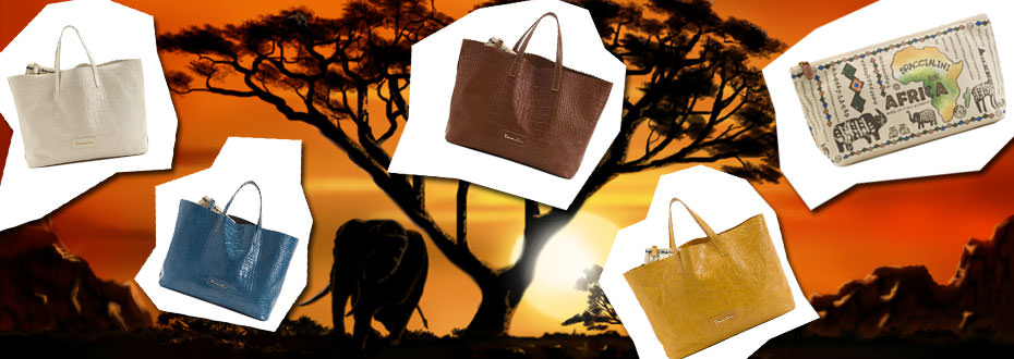 La collezione di shopping bag, il cui ricavato sarà devoluto all’iniziativa, è stata creata per e con l’Africa nel cuore: le borse riprendono i colori intensi del continente, l’ arancio e il marrone della terra, il giallo del sole che la scalda, l’azzurro intenso del mare che la circonda, e l’avorio, uno dei materiali di cui è ricca. Sono rifinite in pelle stampa cocco e all’interno hanno una piccola pochette in canvas, d’ispirazione vagamente tribale.