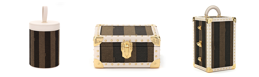 Ma la collezione Luxury Living di Celestino non si limita solo all’arredamento. Nella selezione di sofisticati astucci per gioielli, si fa spazio il nuovo Pequin dentellato in due varianti colore, blu e rosso ciliegia, anch’esso presentato durante il Salone del Mobile. Ma il vero protagonista e nuovo oggetto del desiderio, è sicuramente il Pequin Travel Set, una collezione composta da valigie, bauli, e cappelliere. Il Set riprende il medesimo stile e motivo Pequin della linea dei mobili di design, per completare al meglio l’intero lifestyle firmato Fendi-Celestini. Già da subito disponibile nelle boutique Fendi di tutto il mondo e sul sito fendi.com, il set da viaggio Pequin si è sicuramente guadagnato il primo posto nella nostra wishlist di Natale!