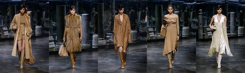 Per la collezione Autunno/Inverno 2021, il neo nominato direttore creativo di Fendi, Kim Jones, propone una serie di pezzi che fondono la sua visione creativa con l’eleganza, la femminilità e il lusso che da tempo descrivono il marchio Fendi.