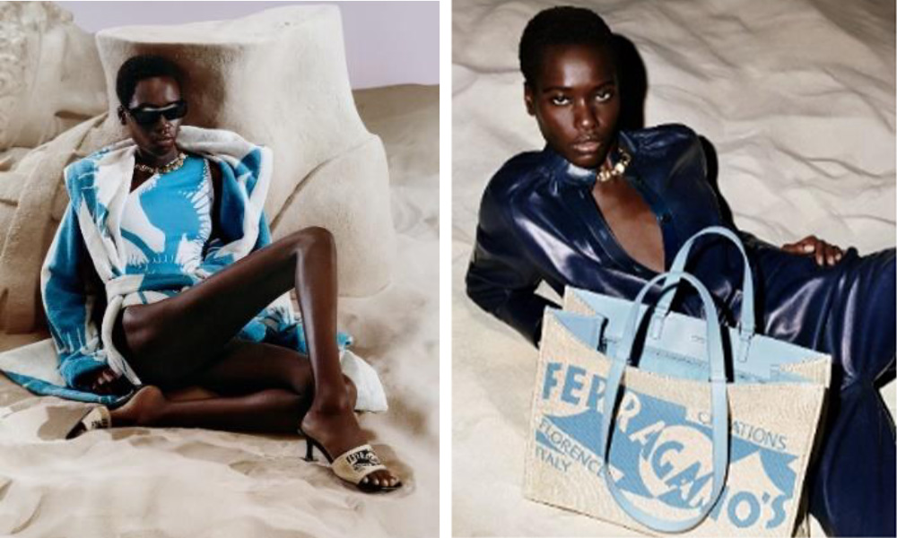 Si affida così a Lucio Venna, che concepisce un eccezionale logo futuristico per il marchio, rappresentato da una tavolozza monocromatica rettangolare con figure geometriche sullo sfondo e un marchio denominativo: Le creazioni di Ferragamo Firenze Italia. Oggi viene così riproposto su una tote bag in rafia e cotone jacquard e su una sneaker in pelle.