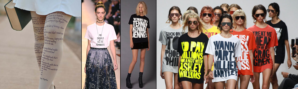 La moda è probabilmente una delle manifestazioni più esplicite della comunicazione visiva. Ma quando le forme e i colori non bastano per esprimere un concetto, la parola scritta ricorre in aiuto dei creativi. Che si tratti di un designer che dissemina le passerelle di brevi messaggi ermetici, o che si tratti di un’adolescente per strada che indossa una t-shirt che cita una qualsiasi delle canzoni di Beyoncé, la moda è un mezzo d’espressione che mai come in questa stagione, ma soprattutto nella prossima, sublima il proprio valore comunicativo attraverso la parola.
