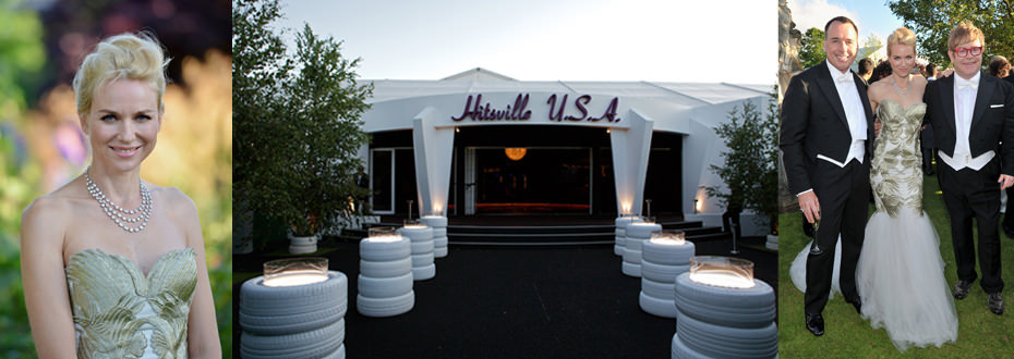 Eleganti, brillanti e principesche creazioni Chopard per abbagliare gli invitati, in altrettanti luccicanti abiti Dior, Pucci, Versace, Lanvin, Valentino, Dolce&Gabbana e chissà quanti altri. I gioielli e gli orologi Chopard sono stati allestiti racchiusi in contenitori di design trasparenti poggiati su bianchi pneumatici sovrapposti tra loro. Attorno, a sfoggiare diamanti e brillanti propri e riflessi e a calpestare i curatissimi prati (per i quali Elton John ha ammesso di spendere, solo in fiori, all’incirca 293mila sterline in un anno), Bill Clinton, Lady Gaga, Elizabeth Hurley, Will Smith, Kirsten Dunst, Naomi Watts, Florence Welch, Kelly Brook, Beth Ditto e la Duchessa di York con figlie al seguito.