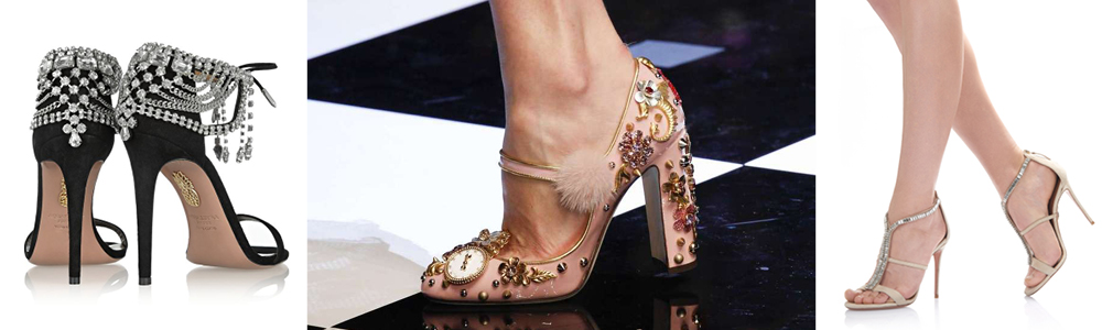 Che si tratti di sandali con applicazioni che ricordano gli chandelier, come quelle di Aquazzurra, o di classiche pump in pizzo impreziosite da cristalli, come il modello proposto da Dolce e Gabbana, queste scarpe non possono mancare nel guardaroba della donna che non ha paura di osare.