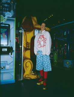 Per la prima volta, Palace introduce capi womenswear, con il Classic Corset di Vivienne Westwood reinterpretato in satin bianco e nero, con una stampa che ritrae Stuart, il cane del fondatore di Palace, Lev Tanju. Anche i capi casual, come felpe con cappuccio leopardate e pantaloni da tuta coordinati, elevano i look quotidiani. Tra gli accessori spiccano le borse a forma di orsacchiotto, ispirate all’iconografia anni ’90 di Westwood, cappelli tartan e collane con il celebre orb.