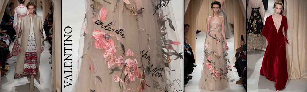 Valentino chiude la rassegna dell’Haute Couture attraverso un tributo al mondo dell’amore, dove le deduzioni di Maria Grazia Chiuri e Pierpaolo Piccioli prendono ispirazione dalla cultura folk russa, dai poetici versi di Shakespeare, dall’Inferno di Dante, dalle creazioni del celebre pittore Marc Chagall, ma anche dal mondo della musica.