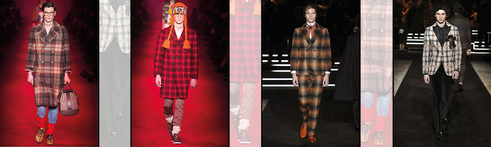 Quest’inverno, molti sono i brand che ripropongono il tartan per vestire l’uomo con un look glamour e di classe: è il caso di Gucci, che propone nella collezione A/I 2016-17 la giacca classica Cambridge, da indossare con jeans e sneakers – o mocassini – per un look metropolitano di tutti i giorni. Per un outfit più deciso e particolare, ecco giungere il completo Heritage, presentato in tartan rosso e nero.