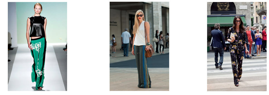 C’è un limite a tutto, si suol dire. Ma non per tutti. Esuberante, eccentrica, minimalista, trasgressiva: la moda non conosce limiti e con i Pajamas Pants, un vero must have di questa primavera, ha dato scacco matto ad ogni fashion tabù. Questi pantaloni larghi di seta, che richiamano molto i classici pigiami maschili, hanno già spopolato fra le very fashion addicted. Di sicuro eccentrici, questi super pants non ci danno regole negli abbinamenti: osare è ammesso, ma senza esagerare. Indossare i pajamas con una canotta o una blusa bianca è più un consiglio che una regola. Viviana Volpicella ha usato con un total look ma l’occhio rischia di non abituarsi. Tuttavia su un punto non ci sono dubbi: in casa o all’aperto, quest’anno, in primavera si sfoggeranno i “pigiami”… di giorno.