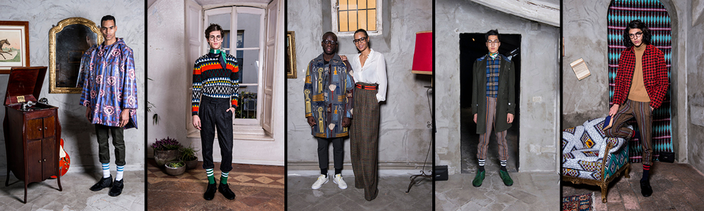 “ E pluribus unum” : questo il titolo della presentazione, motto nazionale degli States e incarnazione della visione sull’estetica sociale della stilista. Un ibridismo culturale in cui diverse etnie intrecciano colori, forme e costumi per completarsi in uno stesso outfit: “da molti a uno”. Ne sono prova i modelli scelti, testimoni di contaminazioni sociali e culturali, rappresentanti delle nuove generazioni. I capi che indossano riflettono questa teoria, mixano know-how della sartoria italiana e pattern sud africani.