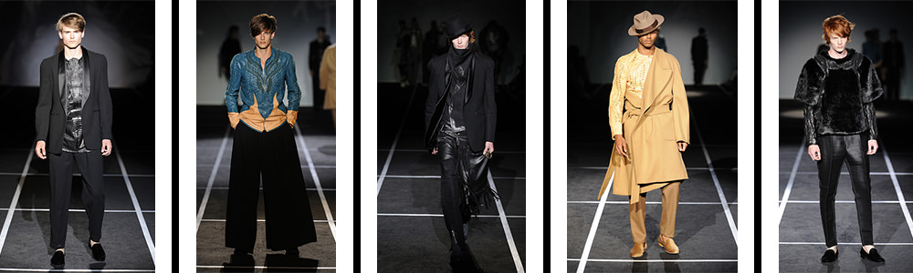 Protagonista assoluto è stato il sudcoreano Han Chul Lee, studente del Royal College of Art di Londra, vincitore del Fashion Collection of the Year e del Vogue Talents Award. Ha presentato una menswear collection dal titolo “Grazia Selvaggia” in cui ha riproposto un gangster anni ’30 elegante, ma al tempo stesso misterioso. Sono stati creati nove look di grande impatto visivo, in cui il sofisticato abito sartoriale viene accostato a tessuti di pelle lavorata in modo minuzioso e dettagliato. I perfetti intrecci di questa “seconda pelle” sembrano dare l’idea di un corpo tatuato ed escoriato, quasi in mutazione. Proprio per creare questi effetti, lo stilista si è ispirato ai film “Hannibal” e “Red Dragon”, insieme ad un tema di stampo sociale come la Yakuza, la mafia giapponese, alla quale l’effetto tattoo creato sul pellame sembra ricalcare. Un perfetto gentleman che nasconde un lato oscuro e brutale.