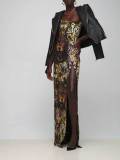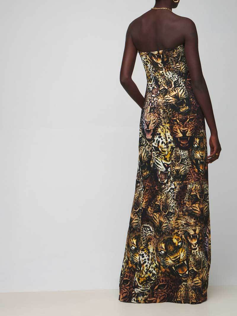 E se di animalier si parla, come non citare la Maison che lo ha reso uno dei suoi simboli negli anni ’90? Roberto Cavalli propone per l’autunno ’21 un abito in cady senza spalline e con ampio spacco laterale con stampate teste di tigre, leopardo e ghepardo ruggenti. Ci saremmo aspettate qualcosa di meno?