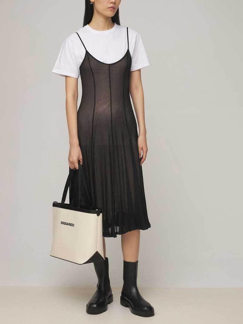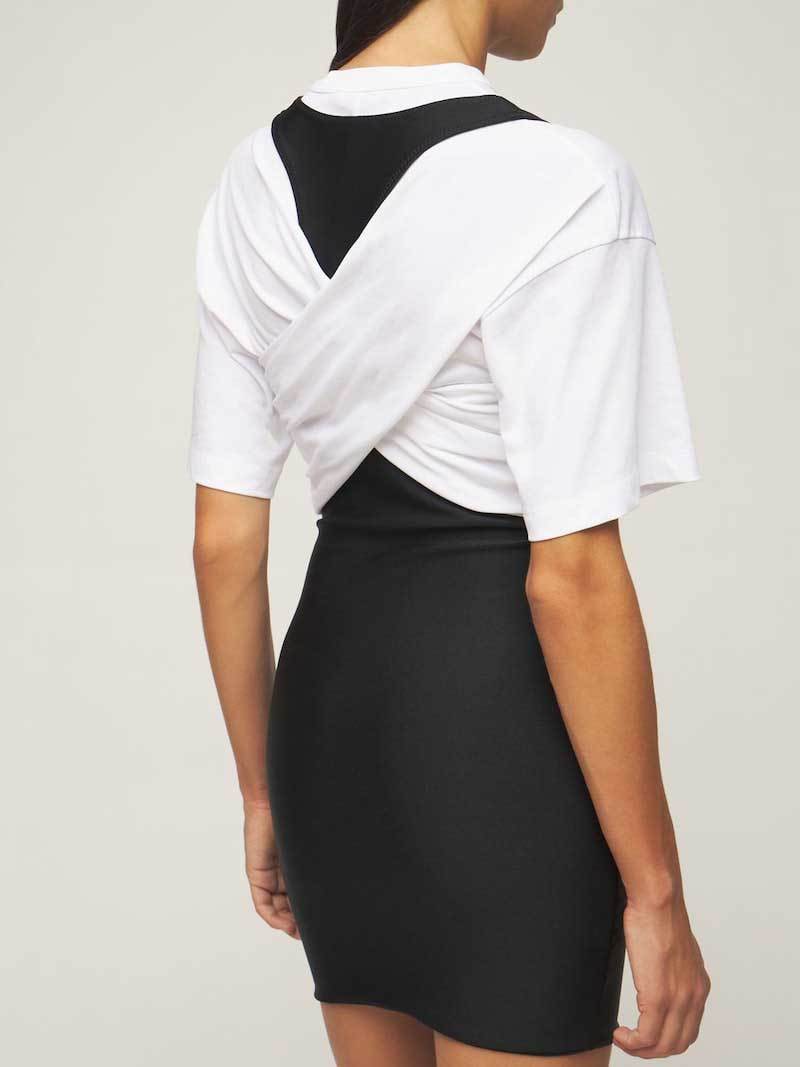 Ed è proprio questo effetto di sovrapposizioni che ispira il vestito con t-shirt integrata di Alexander Wang, che simula l’aspetto di una maglietta annodata in vita sopra ad un mini abito dal taglio sportivo. Sempre studiato per essere indossato a strati, l’abito in maglia di misto viscosa di DSquared2 delinea le forme del corpo senza rivelare niente, ed è perfetto sia per la vita quotidiana che per le occasioni importanti. Molto più bucolico invece il vestitino in viscosa di Self-Portrait con stampati dei ramoscelli fioriti, adatto per le giornate autunnali più calde e abbinabile sia a sandali aperti che ad un paio di sneakers.
