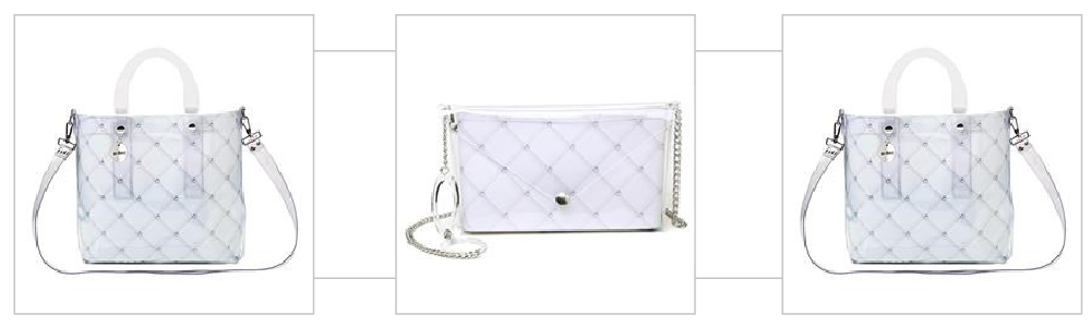 Per chi cerca comfort e capienza senza però rinunciare allo stile, sono perfette la Easy e la Daily, con manici in plexiglass e tracolla, adatte alle giornate di lavoro e di shopping; per le donne che scelgono la brillantezza quando cala il sole, senza rinunciare al comfort, Bi-Bag ha pensato Louise a Holiday, dotata di tracolla in acciaio.