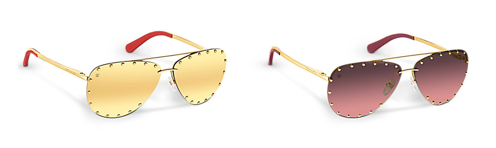 Il riferimento alle atmosfere da festa sulla spiaggia è confermato dalle borchie dorate ispirate ai bauli della Maison che profilano le lenti. Queste sono disponibili in ben cinque varianti colore: Gradiant Brown, Silver, Gold, Gradiant Black Red e Gradiant Blue Pink.