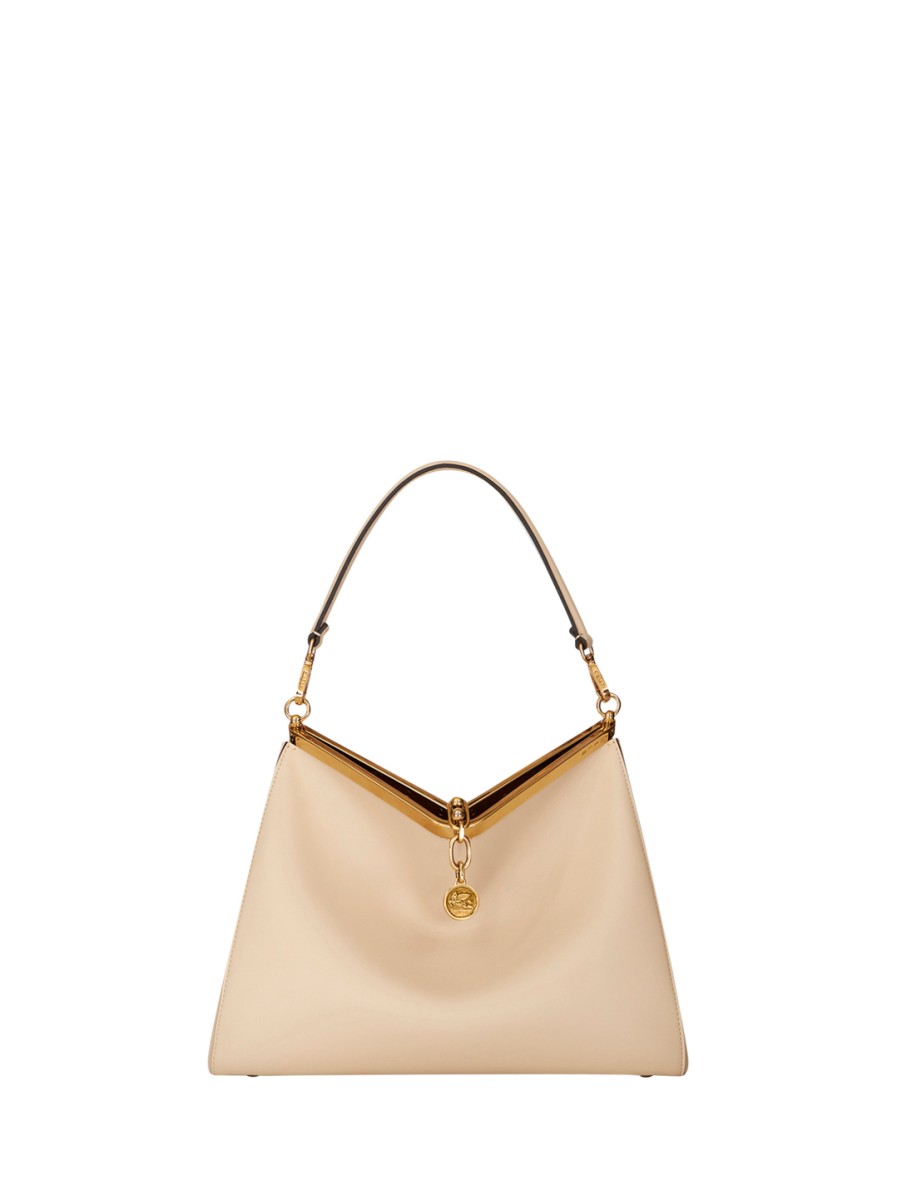 Presentata per la prima volta durante la Sfilata Donna Primavera/Estate 2023, “Vela” si attesta come nuova borsa iconica del brand ETRO. Il designer Marco De Vincenzo ha deciso di creare una borsa che andasse oltre la funzionalità e si rivelasse un pezzo unico dalla forte personalità. La chiusura speciale a V, caratterizzata dalla cerniera snodata, la linea strutturata e il pregio dei materiali utilizzati, rendono “Vela” un articolo veramente prestigioso e un oggetto del desiderio per moltissime donne.