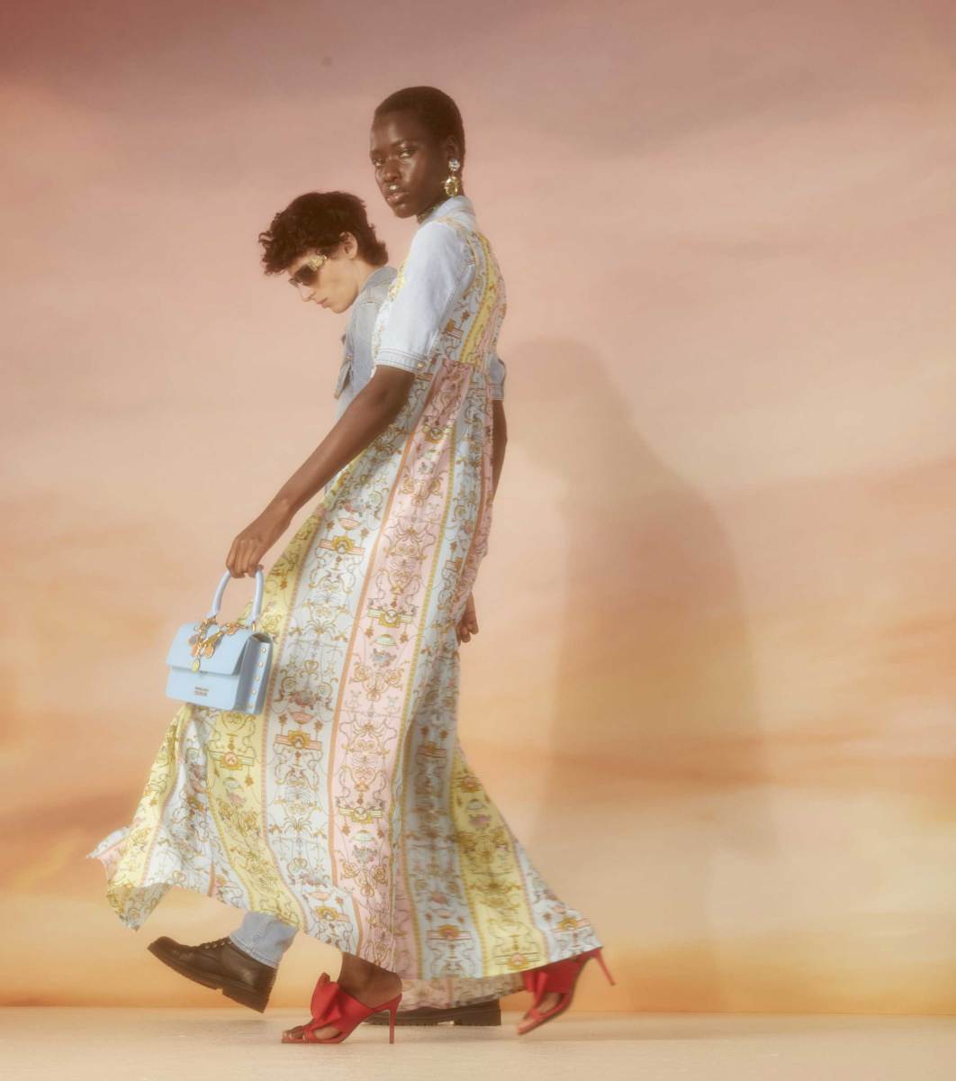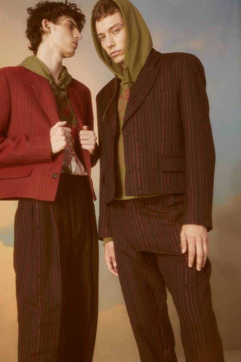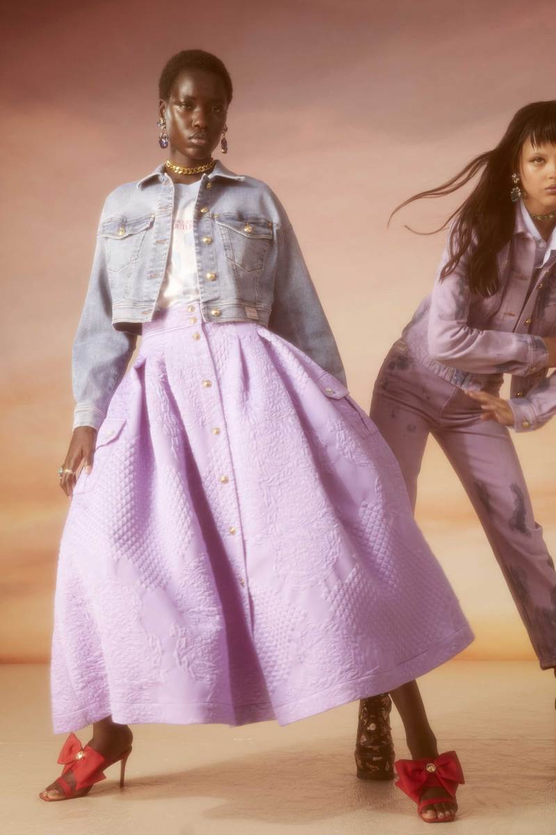 I look folli di questa nuova collezione PE 2021 vogliono trasmettere un’interpretazione contemporanea dello stile aristocratico francese unito alla cultura street e ai giovani. Il carattere fantasioso è arricchito da una palette di colori pastello, stampe dallo stile Rococò e grafiche ironiche. La collezione femminile incarna non solo il romanticismo negli archivi del brand, ma anche nelle giovani subculture: gonne dalle silhouettes sontuose e voluminose sono abbinate a camicie e giacche di jeans. La collezione maschile stravolge la sobria estetica militare unendo i classici pattern camouflage con dettagli audaci e dai colori vivaci. Accenti alla sartorialità si trovano su pantaloni corti o ampi shorts indossati con blazer strutturati.
