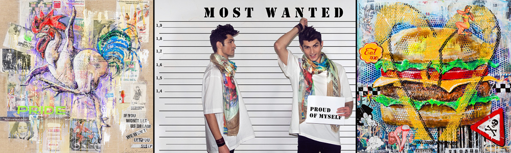 “Sono 100% Made in Italy. Sono appropriati a qualsiasi stagione trattandosi di una composizione mista modal/seta/cachemire, hanno un’ottima stampa che si vede benissimo su entrambi i lati, si mantengono a lungo lavandoli semplicemente in acqua tiepida. Per di più i nostri foulards, che noi chiamiamo FullARTs, sono unisex, ovviamente dipende dal design. La cosa più bella è che quelli che noi definiamo ‘Multipli d’Arte da Indossare’ sono le esatte riproduzioni delle mie opere sui tessuti pregiati che pesano niente. Una comunicazione autonoma della mia creatività – geniale, no?”
