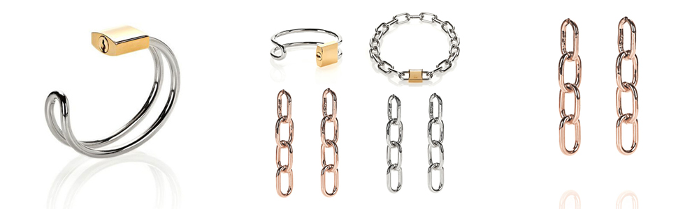 I gioielli Alexander Wang sono l’estensione naturale delle finiture di metallo usate in tutte le sue collezioni di abbigliamento e accessori da anni.