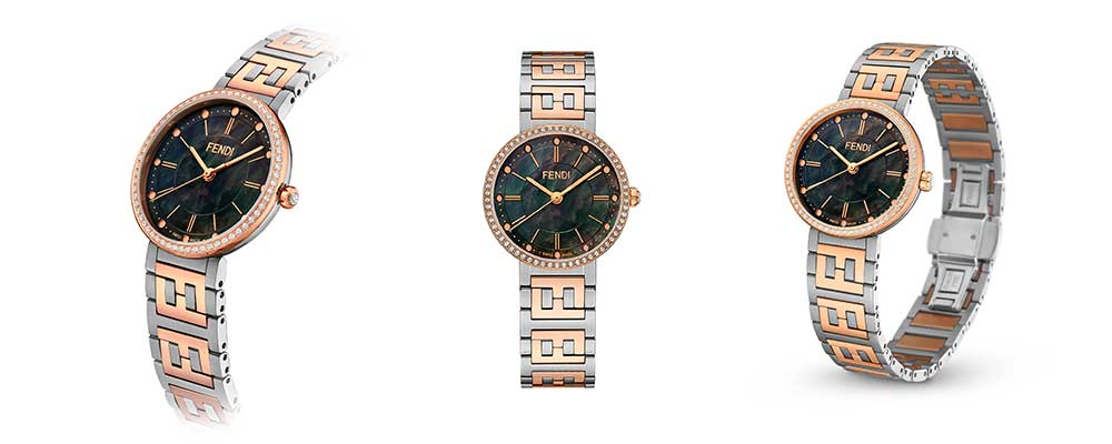 Fendi Timepieces presenta la nuova versione di Forever Fendi Watch. Questi esclusivi pezzi di gioielleria portano nel loro DNA tutte le caratteristiche dell’iconico brand romano. Per questa nuova linea di orologi vengono proposte inedite soluzioni e combinazioni di colori e materiali, come la madreperla rosa e i diamanti. Il motivo che caratterizza ciascun pezzo è l’iconico FF, logo del brand, che risalta sulle nuove versioni del bracciale bicolore. Queste piccole creazioni, dotate di un fascino senza tempo, impreziosiscono e rendono unico sia un outfit casual che un capo elegante.