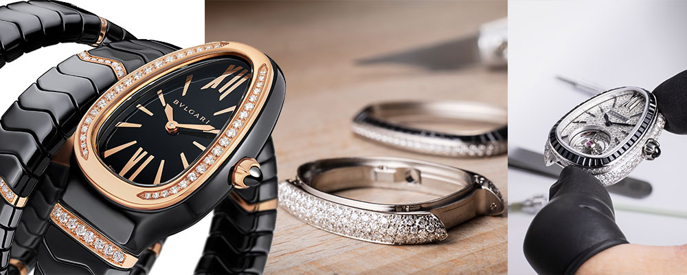 Il colore nero è il protagonista nelle collezioni Bulgari di quest’anno. Tre modelli diversi di orologi firmati Bulgari usano questo colore iconico: il nero in Bulgari si fonde con i più svariati materiali e veste le collezioni di Serpenti Seduttori, Serpenti Spiga e Bulgari Bulgari. Tre modelli perfetti per descrivere un’orologeria misteriosa e senza tempo. Nella collezione Serpenti Seduttori Tourbillon il nero crea un effetto scintillante grazie a una contrapposizione affascinante tra diamanti e spinelli neri.