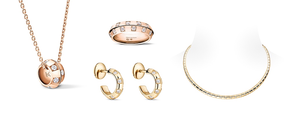 La collezione Le Damier di Louis Vuitton è stata lanciata nel 2024 con un design sensuale e dinamico; per il 2025, la collezione ora accoglie una nuova finitura in oro rosa omaggiando una gamma completa di nuovi gioielli: anelli, un bracciale, un ciondolo, una collana e degli orecchini. Tutti i diamanti dei gioielli sono notevolmente incastonati a mano in quadrati leggermente obliqui, accentuati con impostazioni di quattrograne, una caratteristica geometrica distintiva.