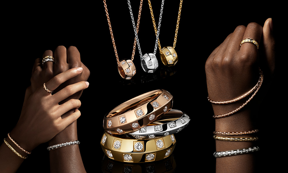 Due braccialetti amplificano ulteriormente la collezione. Le novità includono un bracciale slim in oro rosa e un braccialetto più grande in versione oro e bianco che, insieme, si uniscono.