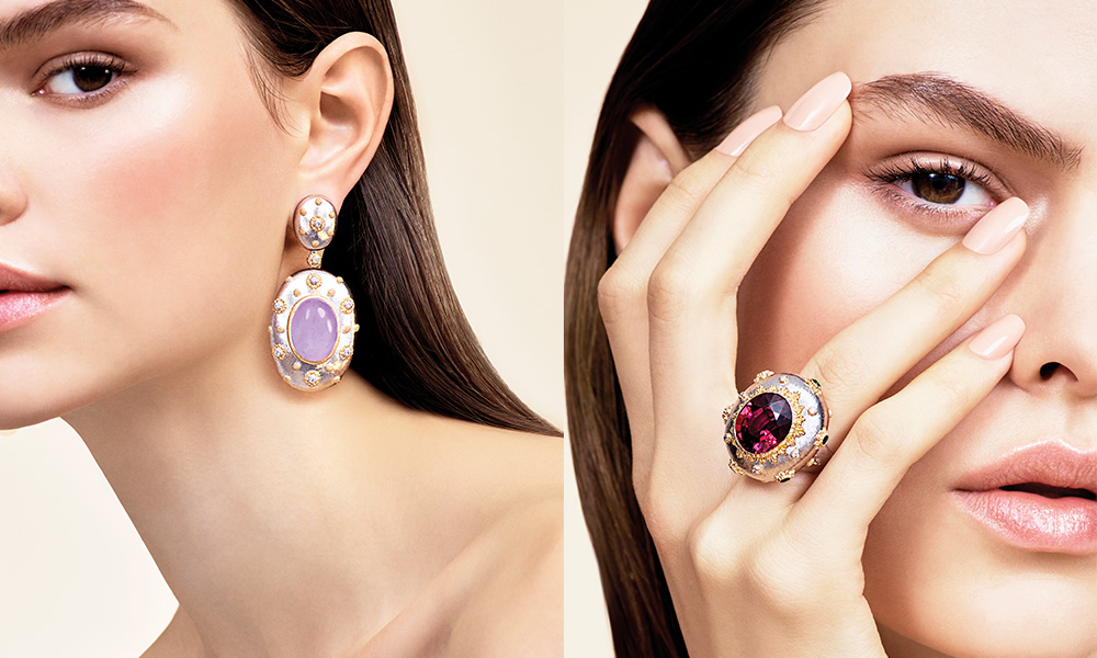 Il design della collezione firmata Buccellati emana un fascino senza precedenti, grazie alle sue pietre misteriose dai colori sgargianti e il connubio riconoscibile tra bellezza estetica e capacità tecnica. Le incisioni a “rigato” e “ornato”, le forme sinuose e i colori vividi e intensi delle pietre richiamano perfettamente la personalità intima di Buccellati, che viene resa ancora più unica dai dettagli dorati.