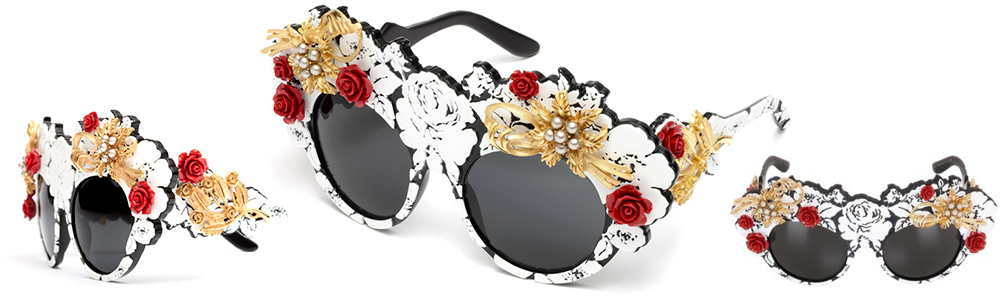Motivi romantici e sofisticati che rispecchiano l’eccellenza e l’estro creativo del brand italiano, che ogni stagione stupisce con le sue creazioni. La collezione, ispirata alla sfilata della stagione AI 2015/16, comprende modelli dalla forma leggermente squadrata, caratterizzati dal broccato siciliano che viene riprodotto sul frontale e sulle aste dell’occhiale da sole, la cui montatura in acetato esalta il motivo in rilievo.
