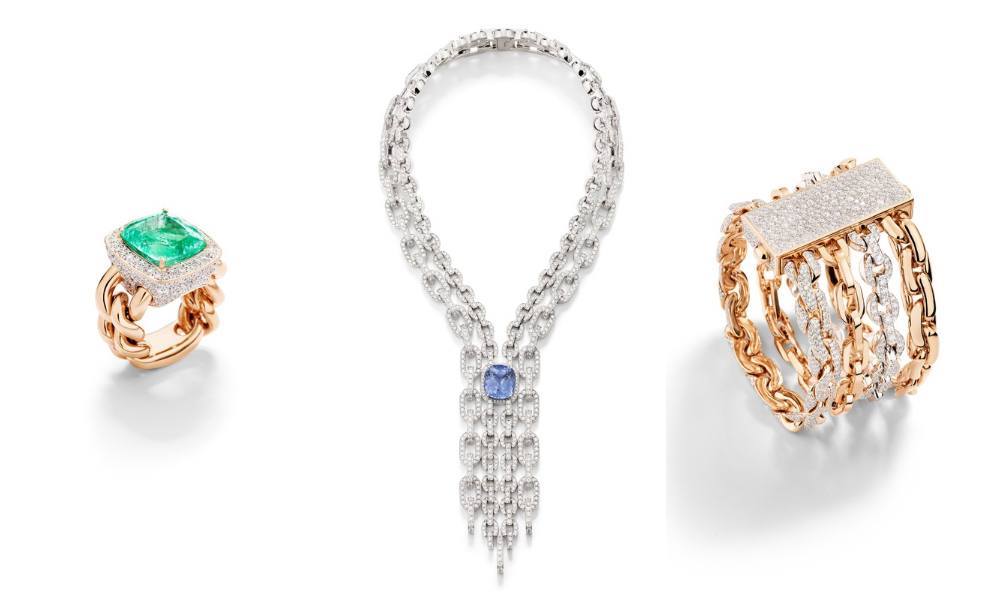Negli anni ’90 la Maison raggiunge una sintesi sorprendente tra minimalismo e gioia cromatica, confermandosi maestro indiscusso del colore. È il decennio in cui l’Alta Gioielleria si alleggerisce, diventando più versatile e adatta a uno stile di vita dinamico. Parure come la Lagoon Bavarole, una cascata di tormaline verdi dalla disposizione irregolare, esprimono un lusso libero e fluido. Gli orecchini Marvelous Griffe, che accostano cabochon di acquamarina, rubellite e tanzanite, sembrano quadri astratti in miniatura, capaci di catturare la luce con effetti pittorici. L’anello e la collana Iconica Extreme, con i loro volumi scultorei illuminati da diamanti taglio baguette e uno smeraldo cushion da 12,27 carati, incarnano la forza degli anni ’90, mentre la collana trasformabile Precious Snap Hook diventa simbolo di empowerment e libertà di espressione. In queste creazioni si respira la joie de vivre del decennio, una celebrazione di vitalità che esalta il colore come linguaggio universale.