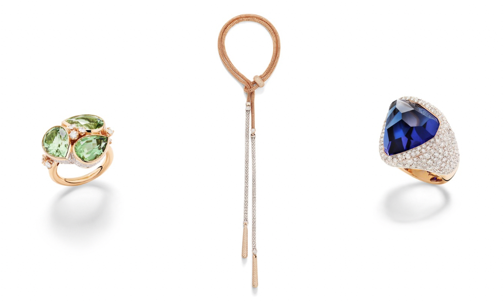 Gli anni ’80 segnano per Pomellato l’epoca dell’esuberanza, della sperimentazione e della ricerca di volumi sempre più audaci. È il decennio in cui il gioiello diventa scultura indossabile, carico di teatralità ed espressività. La collana Asimmetrico Tanzanite, con pietra da 55,96 carati e oltre 700 ore di lavorazione, rappresenta un trionfo di virtuosismo tecnico e visione artistica. Accanto a lei, la Zigzag Supreme, con le sue tanzaniti blu-viola, e le varianti della Rivière Zigzag, animate da tourmaline verdi e rubelliti, raccontano una stagione di esplorazione formale che sfida la simmetria e abbraccia l’imprevisto. È un’epoca in cui Pomellato non teme di osare: linee spezzate, geometrie volutamente sbilanciate, giochi di colore sorprendenti danno forma a un linguaggio che restituisce tutta la vitalità e l’euforia di un decennio segnato da energia e affermazione personale.