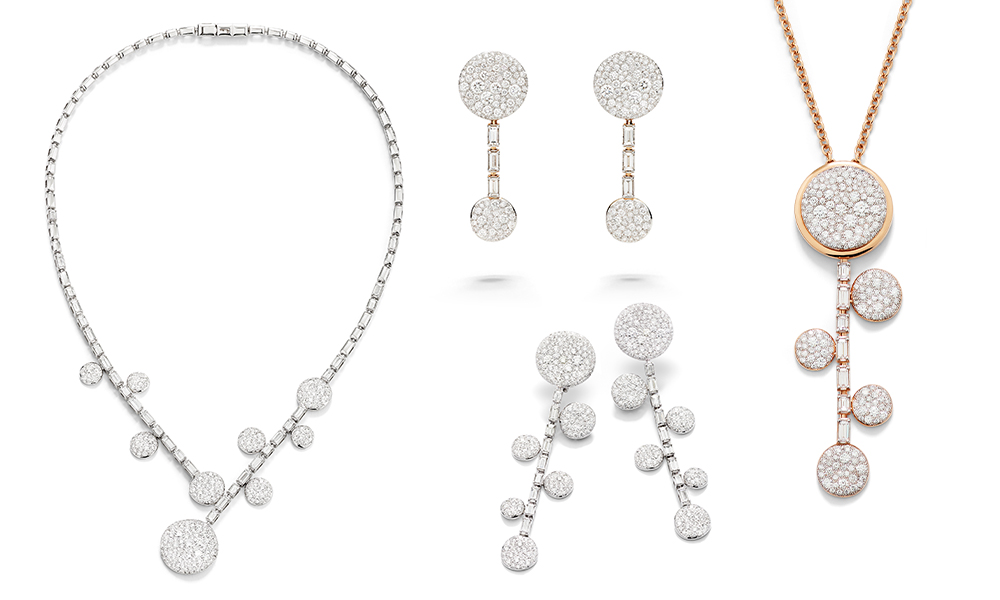 Tra i nuovi pezzi spicca la collana lariat, che combina eleganza e funzionalità. Il disco iconico in oro rosa, impreziosito da pavé di diamanti bianchi, è accompagnato da una coda di diamanti baguette e da dischi Sabbia più piccoli. L’elemento mobile della collana permette di regolare la lunghezza e di indossare il pendente sia davanti sia dietro, offrendo versatilità e possibilità di personalizzazione.