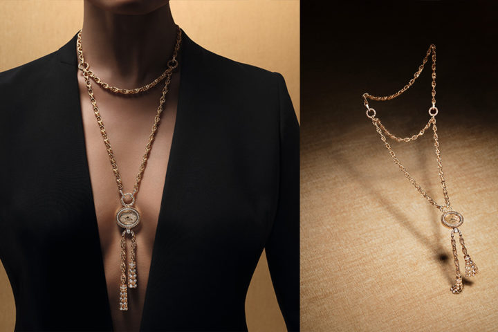 Tanto splendente quanto prezioso è il pendente Piaget Rose, per completare il look e rendere ancora più onore agli orecchini Piaget Rose. Anch’esso impreziosito da lucenti diamanti, illuminati dall’inconfondibile scintillio dell’oro bianco, il pendente si propone lungo una catena regolabile secondo il desiderio di chi lo indossa, andando dal cuore sino all’inizio del décolleté. L’idea conferita è proprio quella di una rosa che sboccia sul collo, un tocco di classe inimitabile e irresistibile.